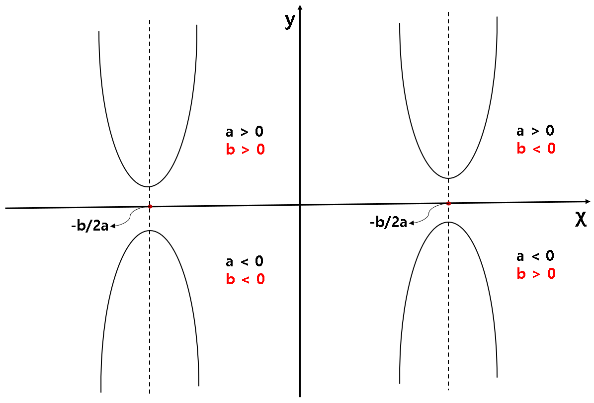 b의 부호는 그래프 볼록을 결정하는 a 값과